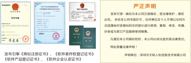 “发布引擎”是天助网打造的全球的多语言商机在线(SaaS)发布服务平台。它整合了包括阿里巴巴、 慧 聪、中国供应商等主流名站在内的7000多家中文商贸网站及Alibaba、Ec21、Ecplaza、Go4world-business等近1000家英文商贸网站, 并能对用户的商机信息进行有效的匹配和发布。作为中国在线商机发布服务的开创者,“发布引擎”与 “门户网站”、“搜索引擎” 一起被称为拉动中小企业网络营销的三驾马车。